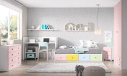 Por otro lado, el dormitorio se podrá con una mesita de noche, estanterías, una cómoda con tiradores y pomos intercambiables, estanterías, escritorio… En definitiva, todo lo que se desee.